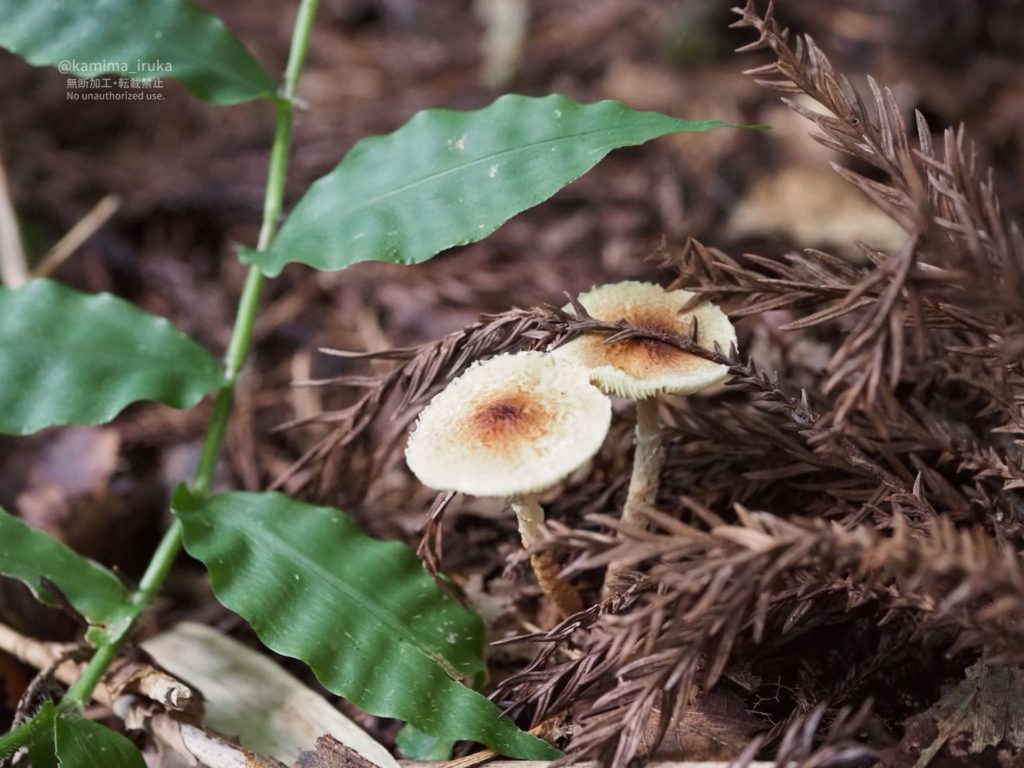 仙人草の花がもりもり勢力を拡大していたり、木陰ではキノコ達が元気だったり