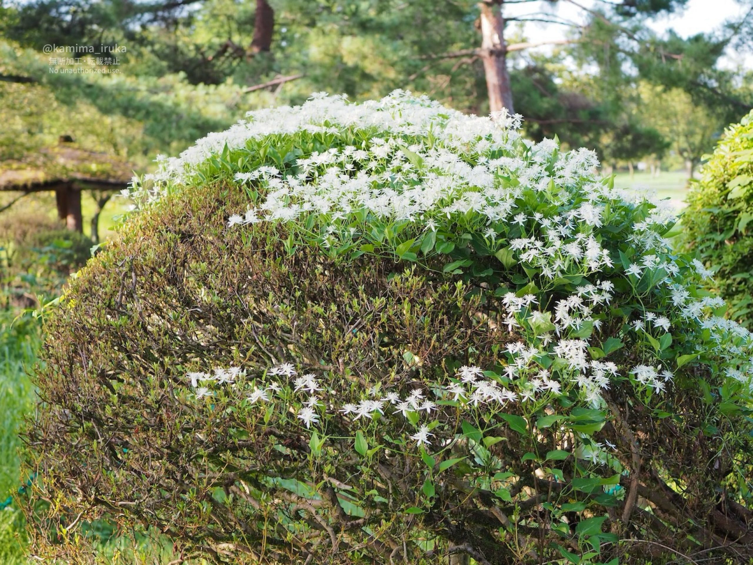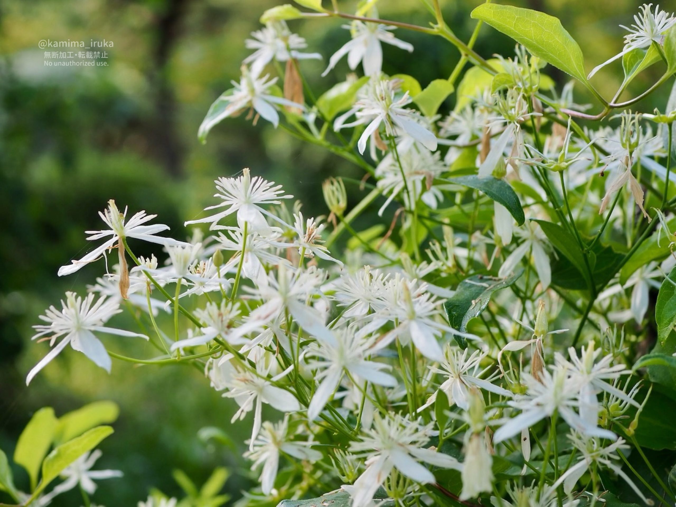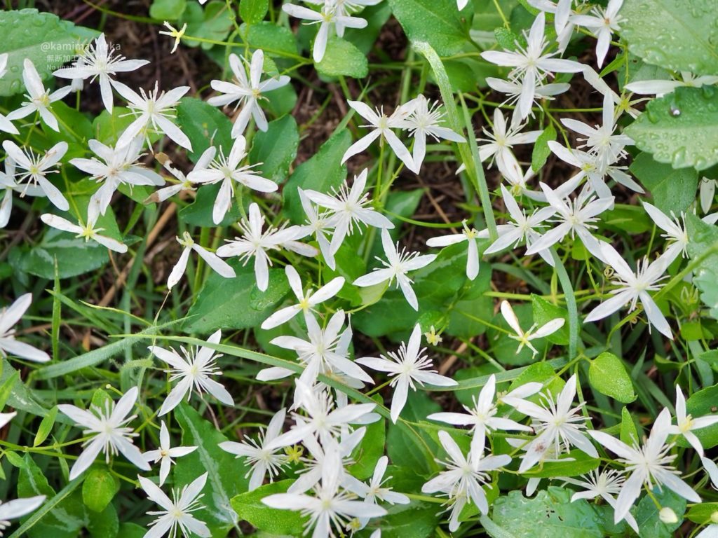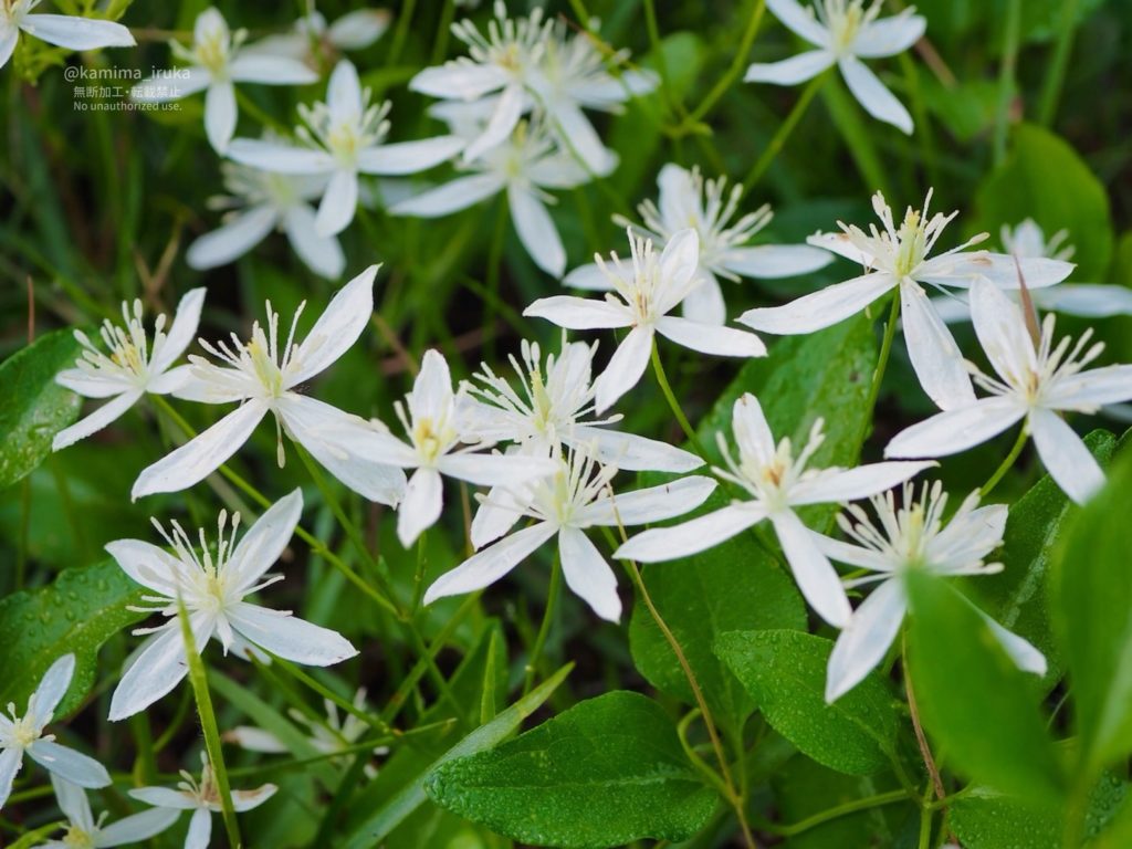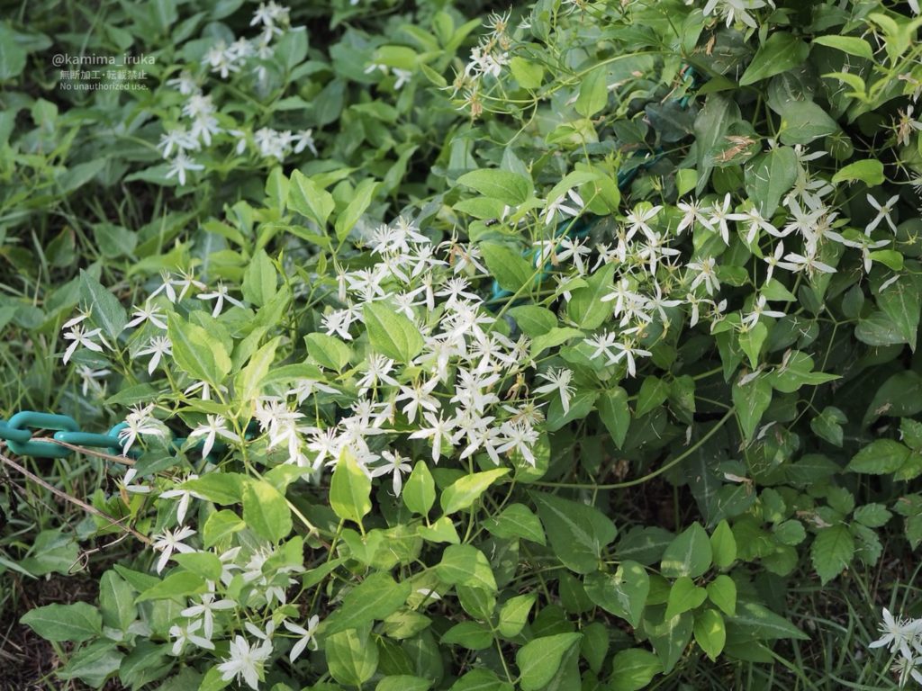 びっしりと咲いている白く清楚なお花…センニンソウかな?(似ている花にボタンヅルがある)