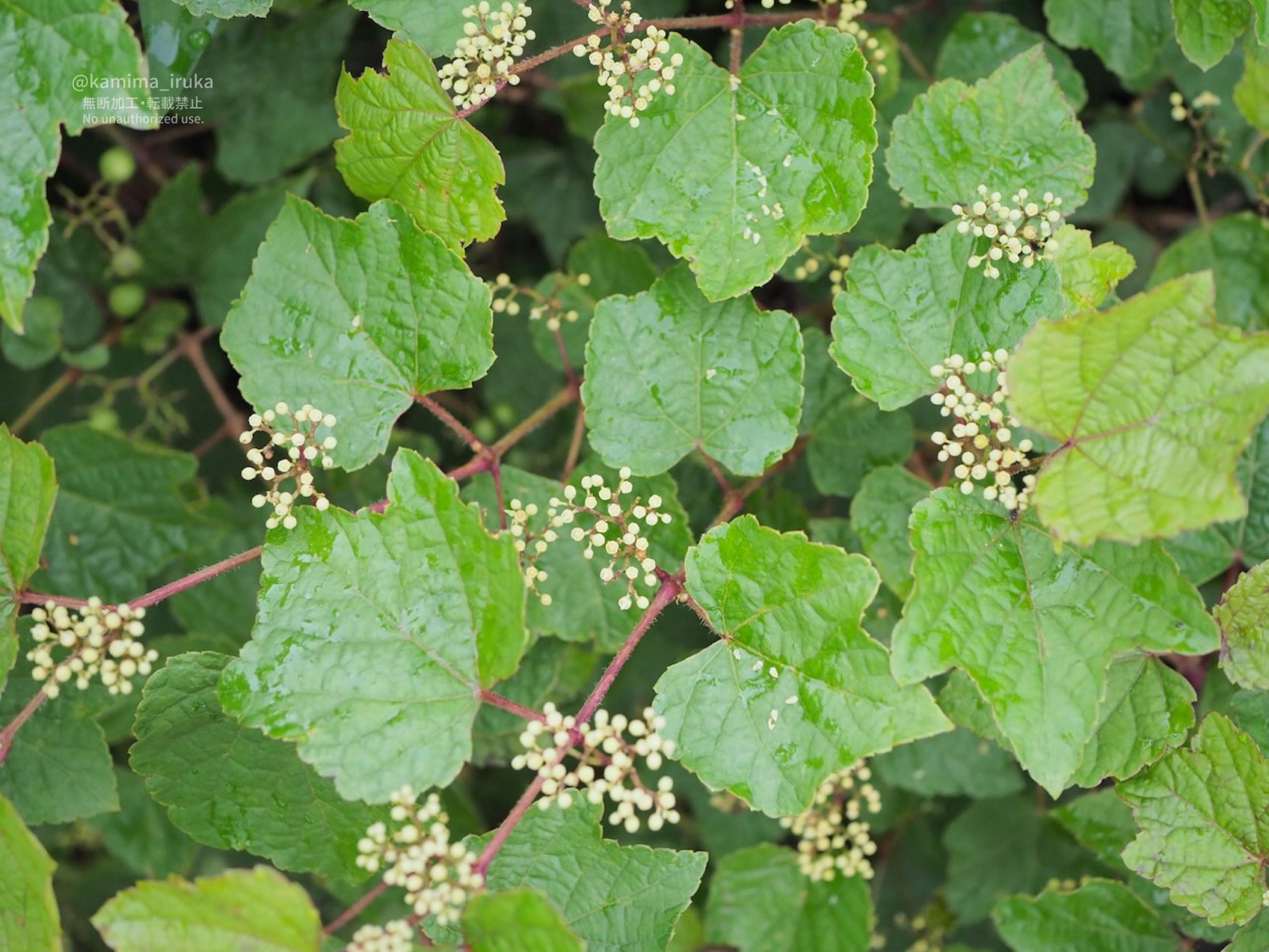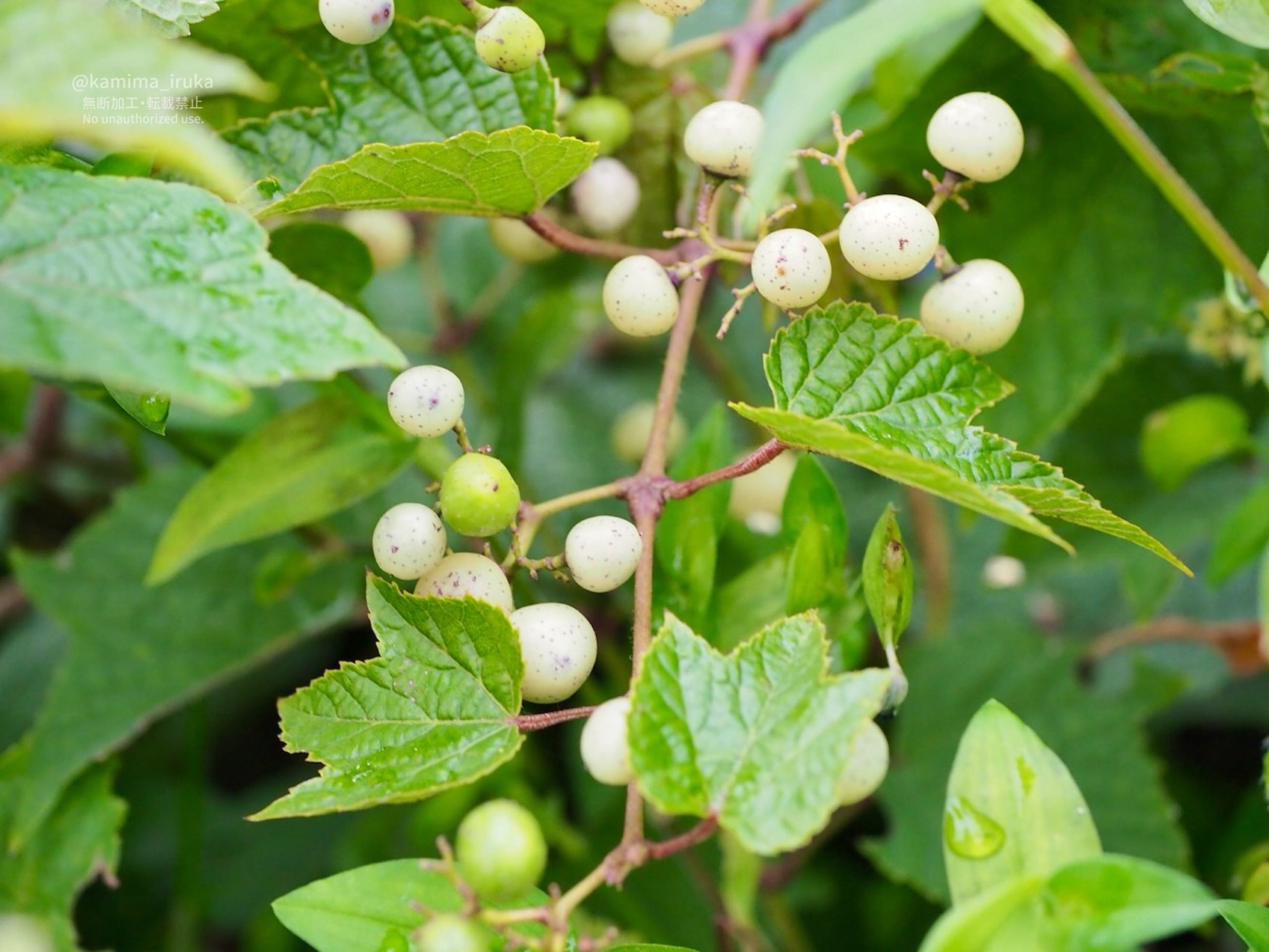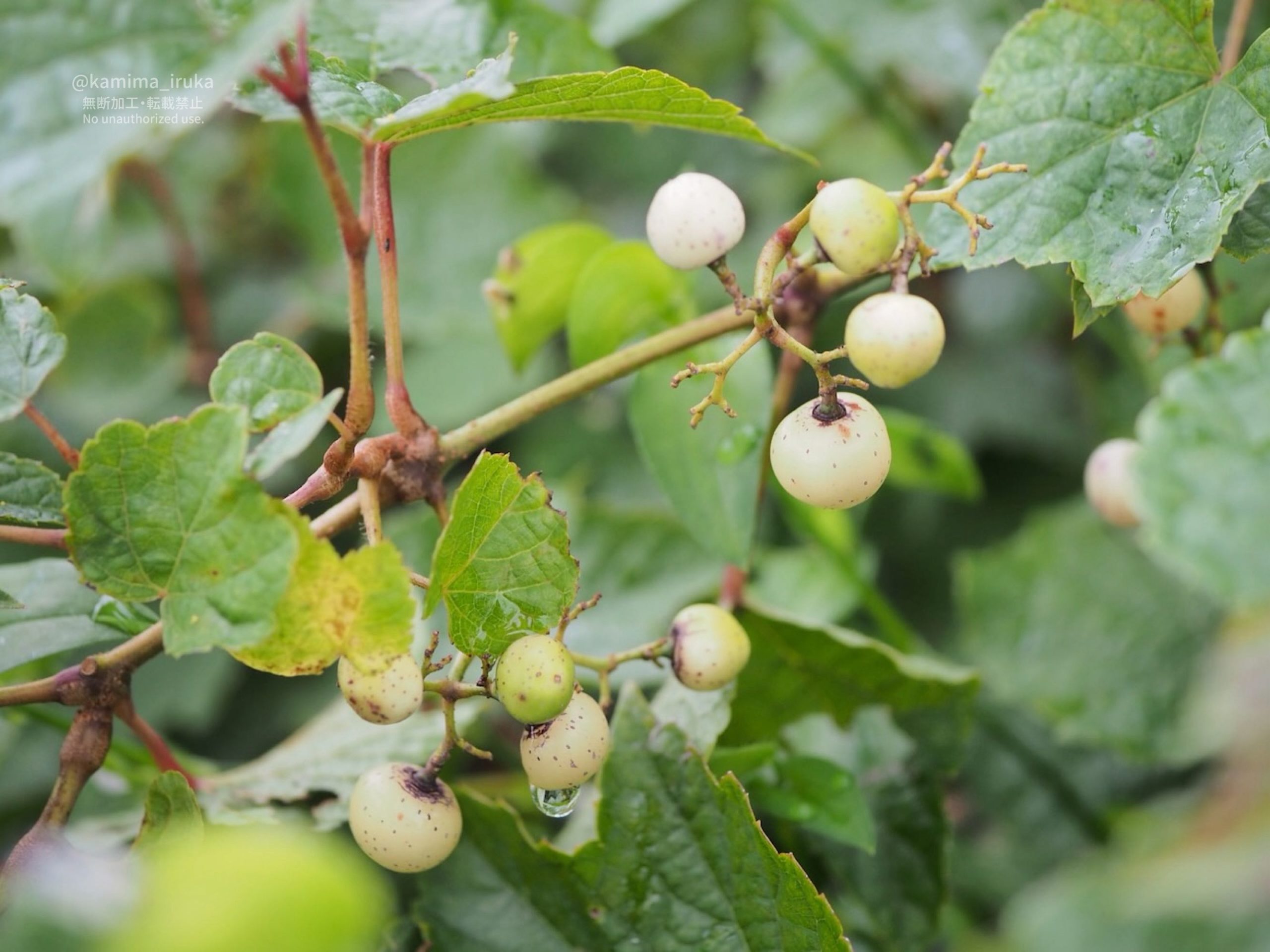 ノブドウのまるい実が、だんだん色づきはじめておりました。