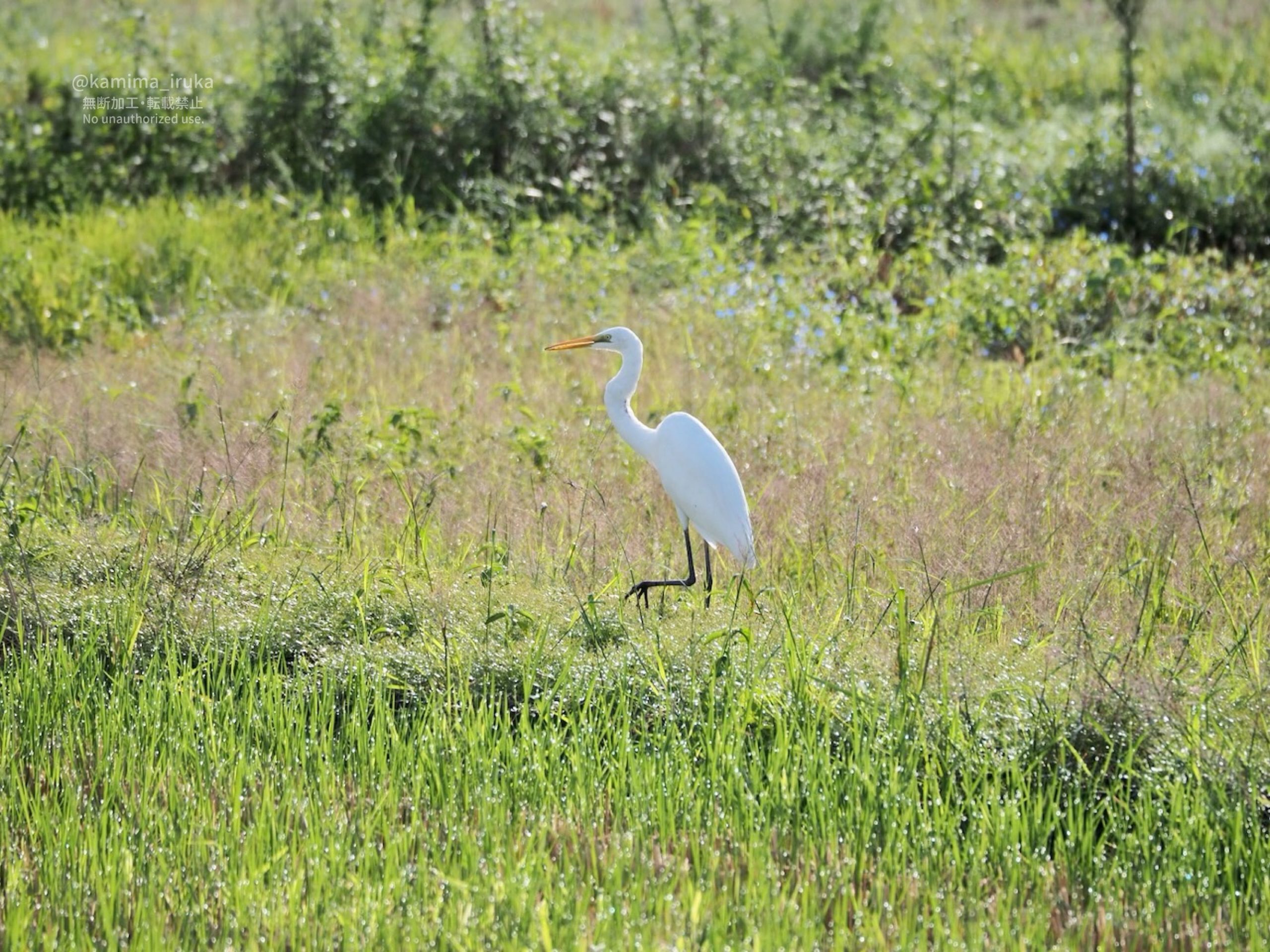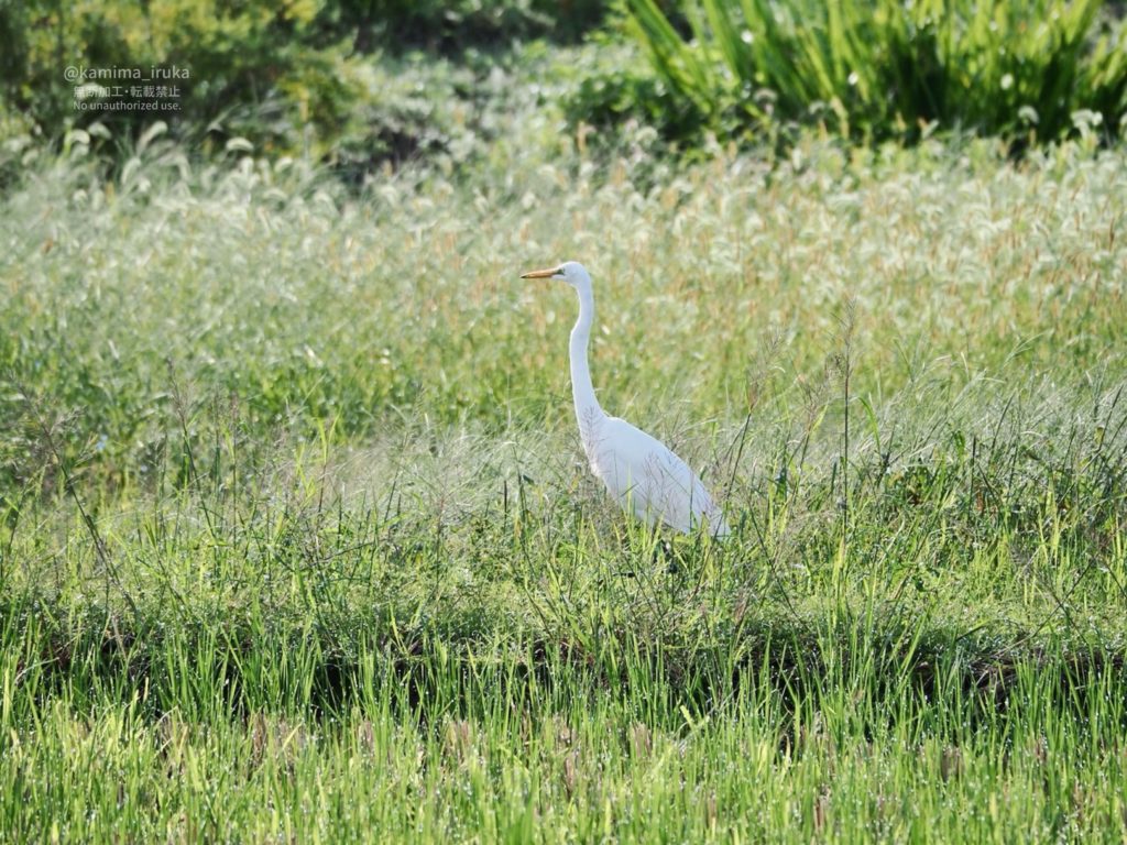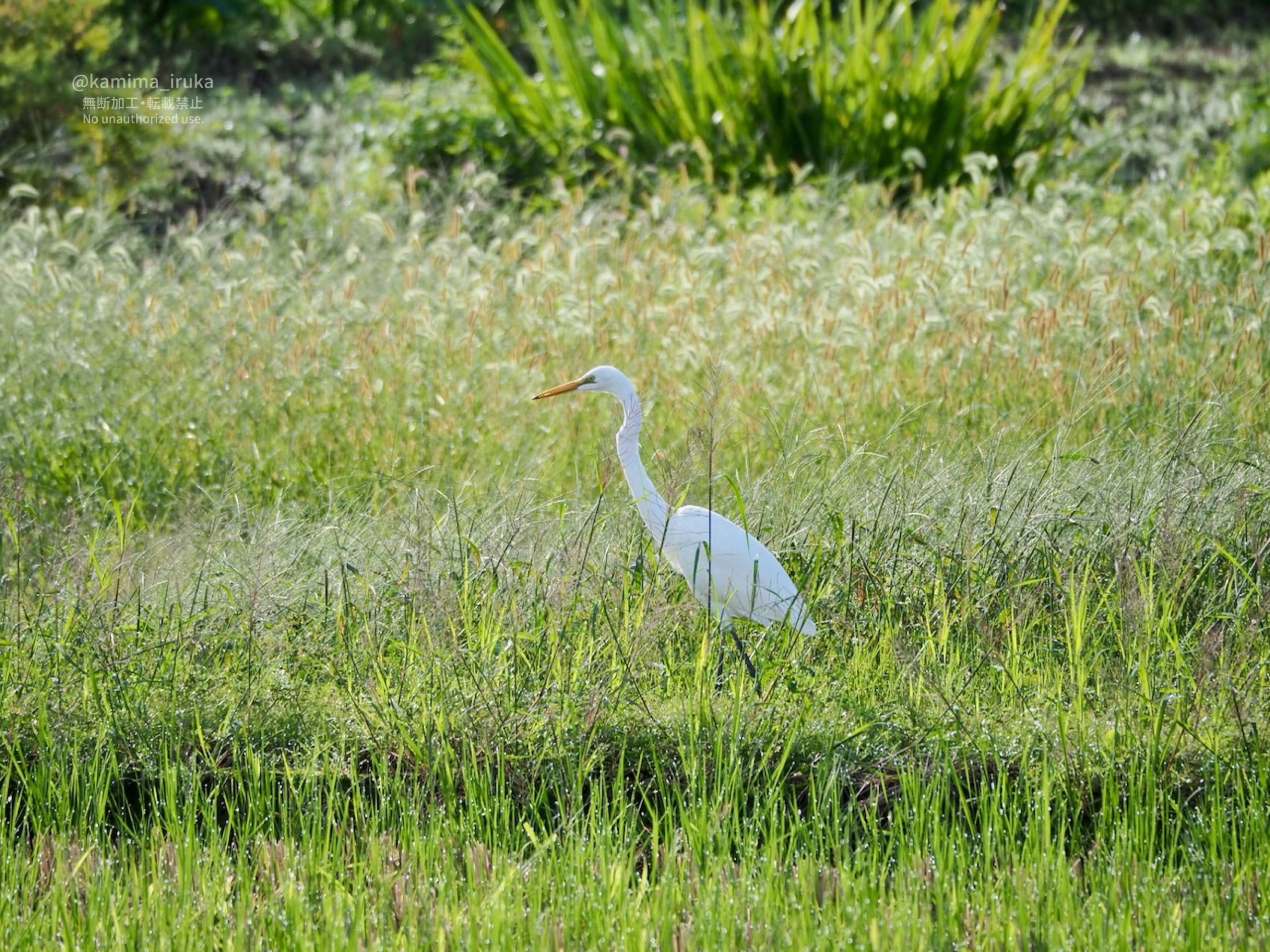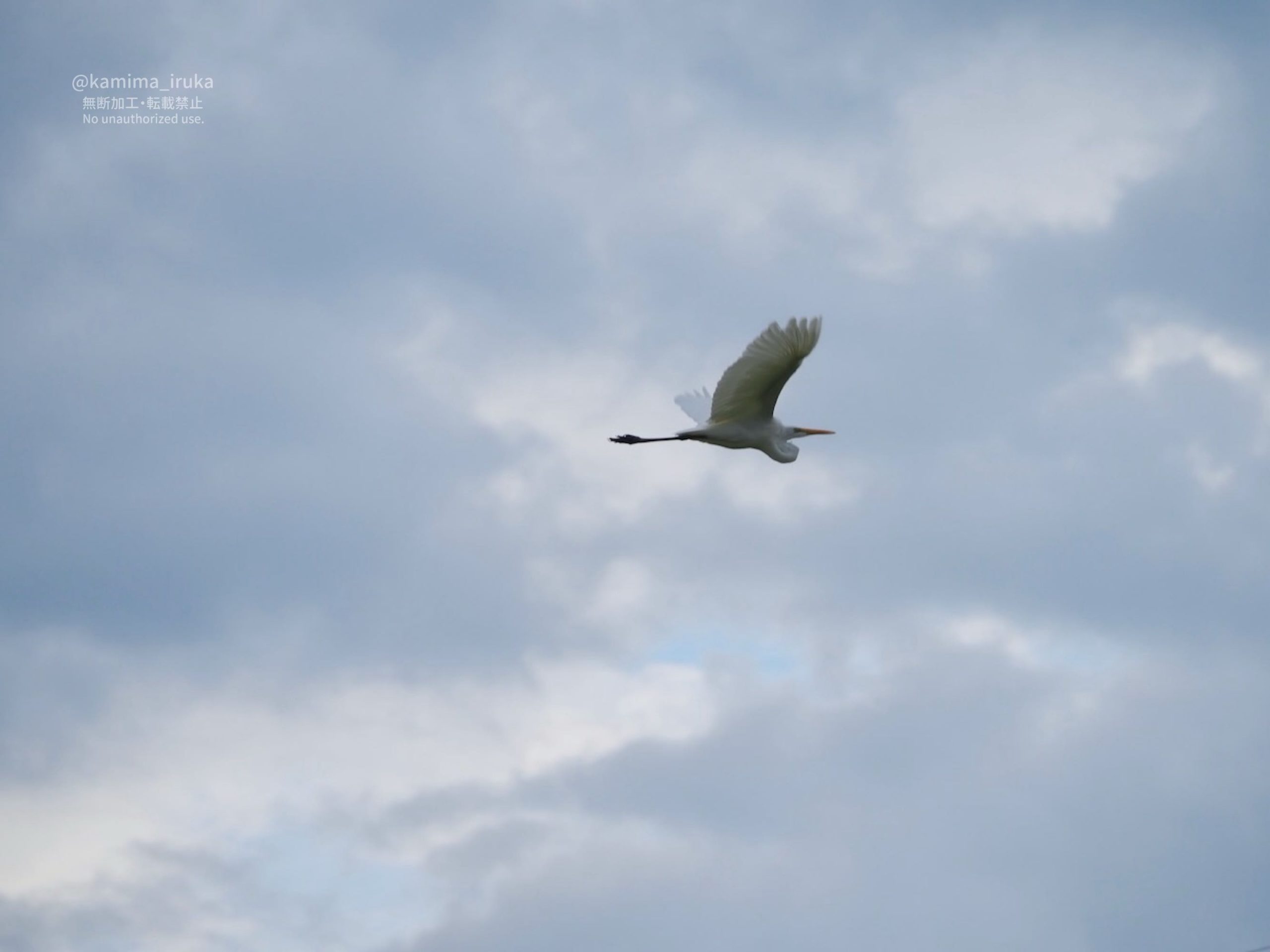 飛翔するダイサギ氏と、畦道を闊歩する同氏。ほんと何してても絵になるなキミは…。