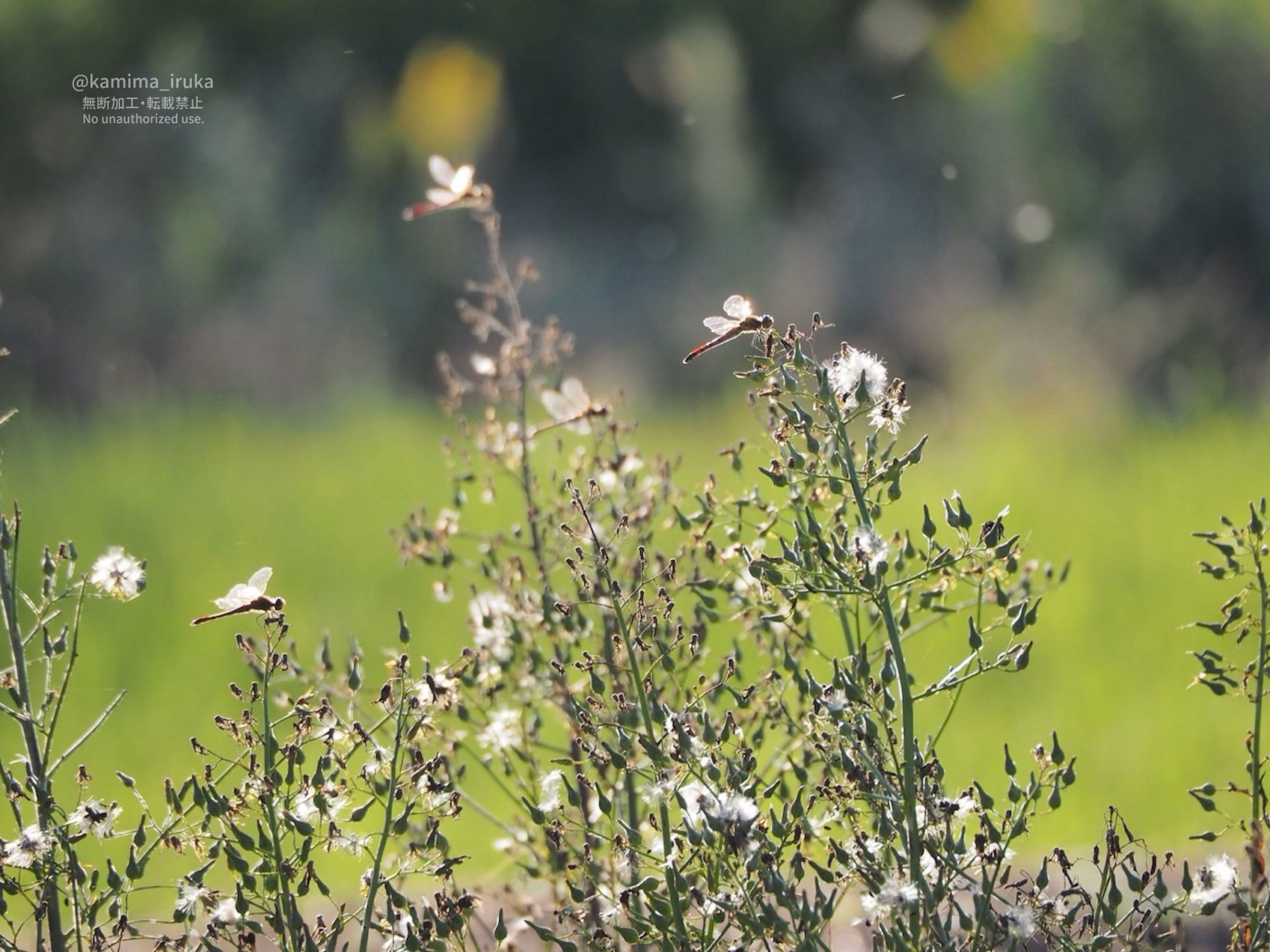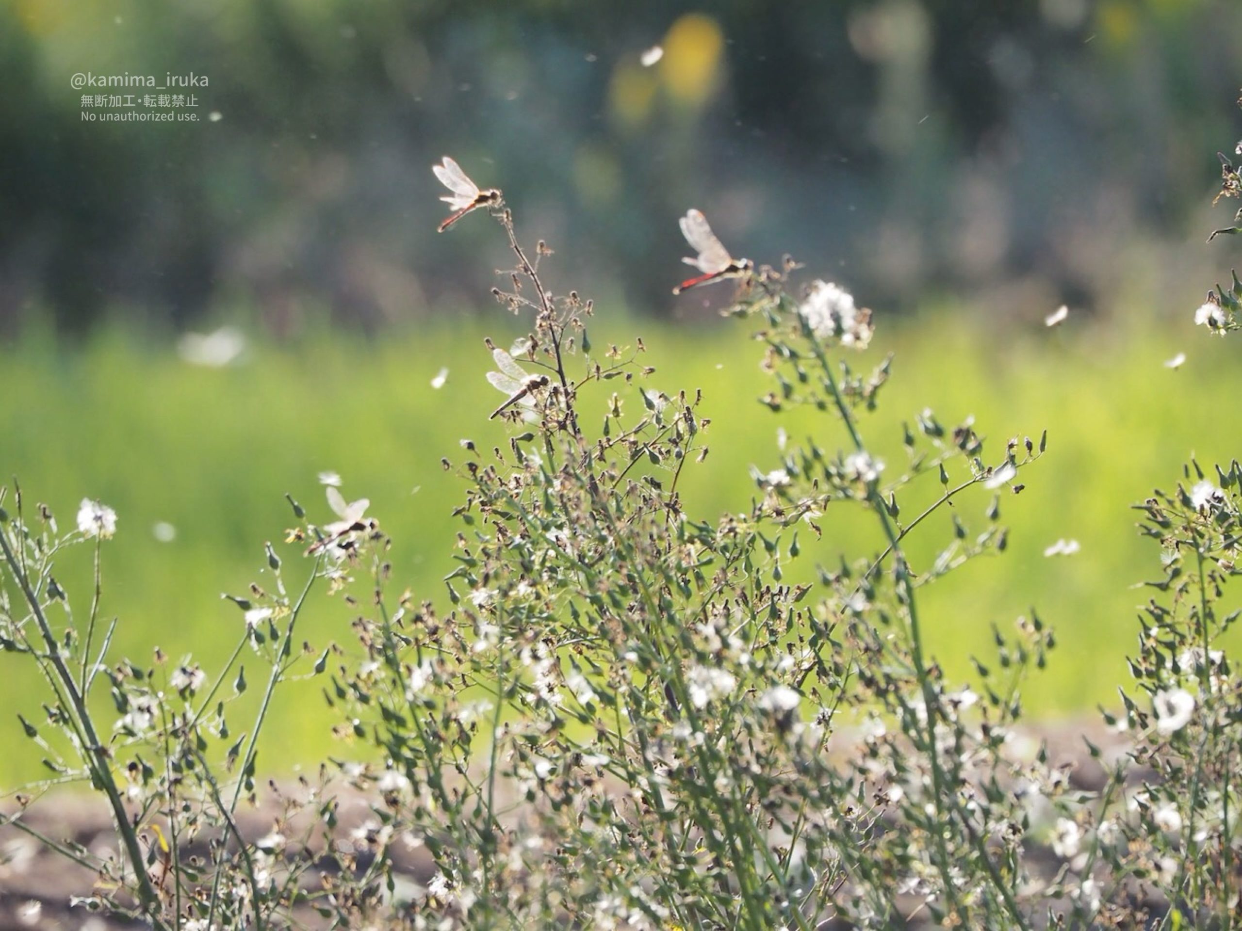 アキアカネもずいぶん数を減らしているようですが、それでもまだ川辺を歩いていると、ぶつかりそうになるくらいの密度で飛んでおります。