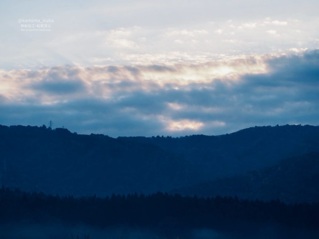 朝の山間は数分のうちにどんどん空が変わるので、見てて飽きない…。