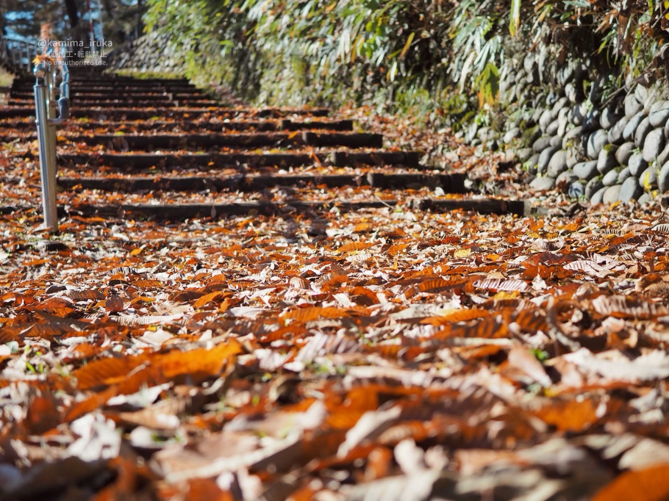 kamima_iruka 2025-11-27 朝…ではないけど、天気が良いので午後のおさんぽ。クマーが怖いので最近あまり山側には行かないのですが、しっとり濡れた落ち葉の甘い香りを、ちょっとだけ楽しんできました。 雪囲いの準備をされていた石灯籠や狛犬たち。なんかカワイイけれど、地元民にとっては厳しい冬の訪れを感じさせる光景…。 ハラハラとふりつもる 落ち葉の階段。 ← 2025/11/24 あささんぽ 2025/12/19 あささんぽ →