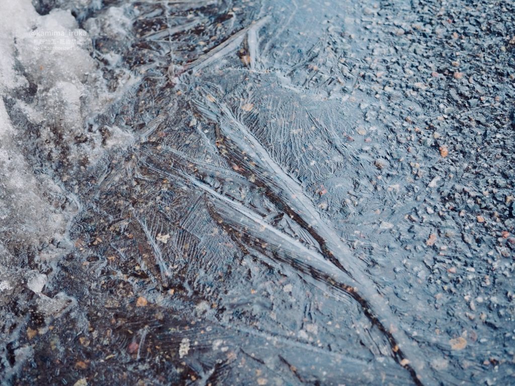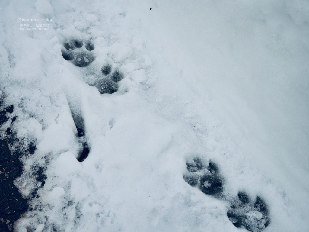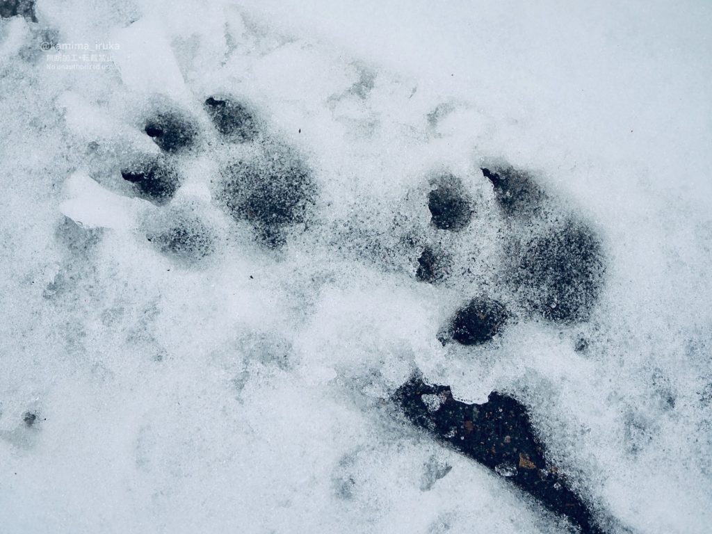 雪氷の上には、元気にお散歩したらしき大型犬の肉球跡がクッキリと…