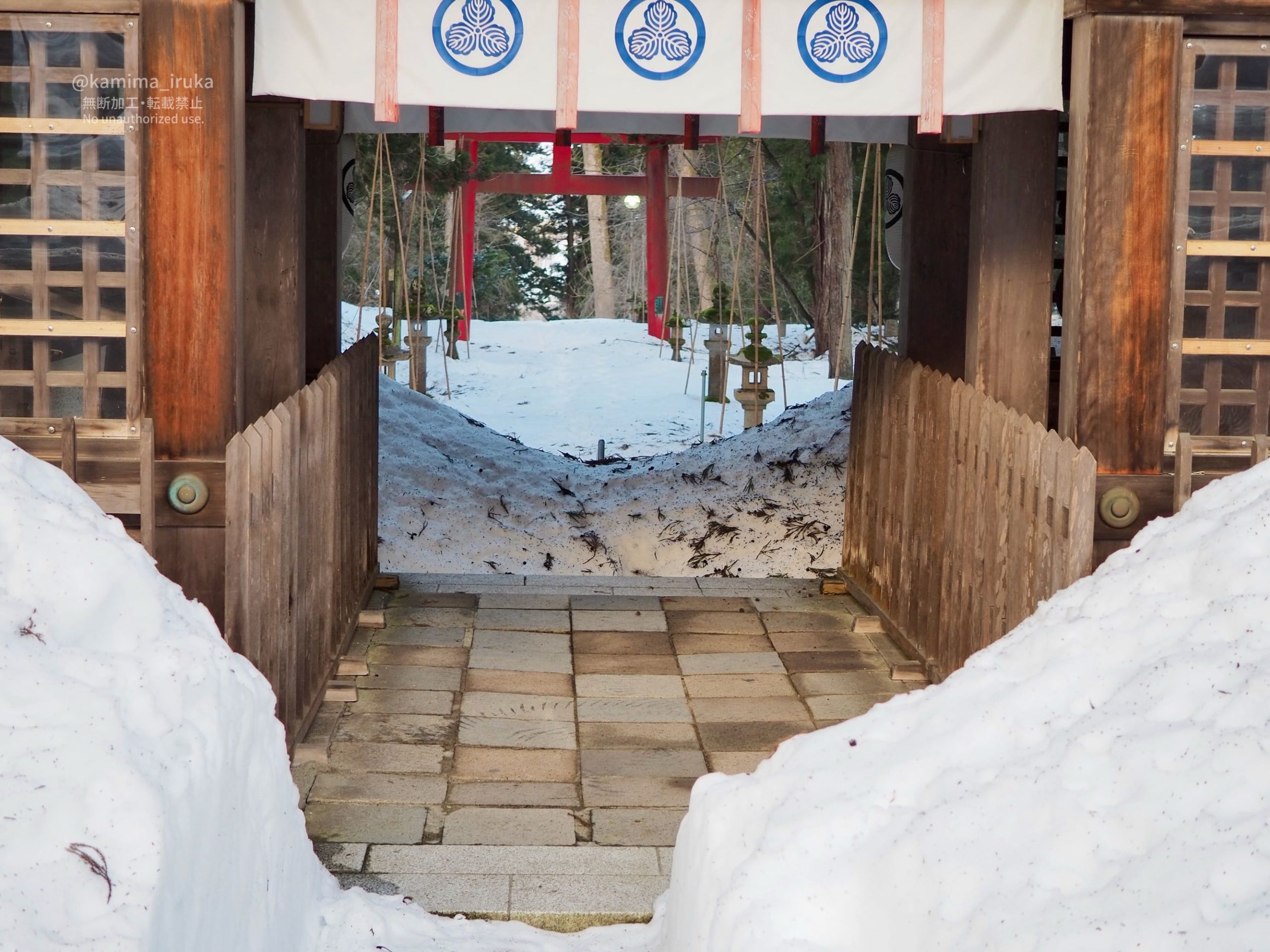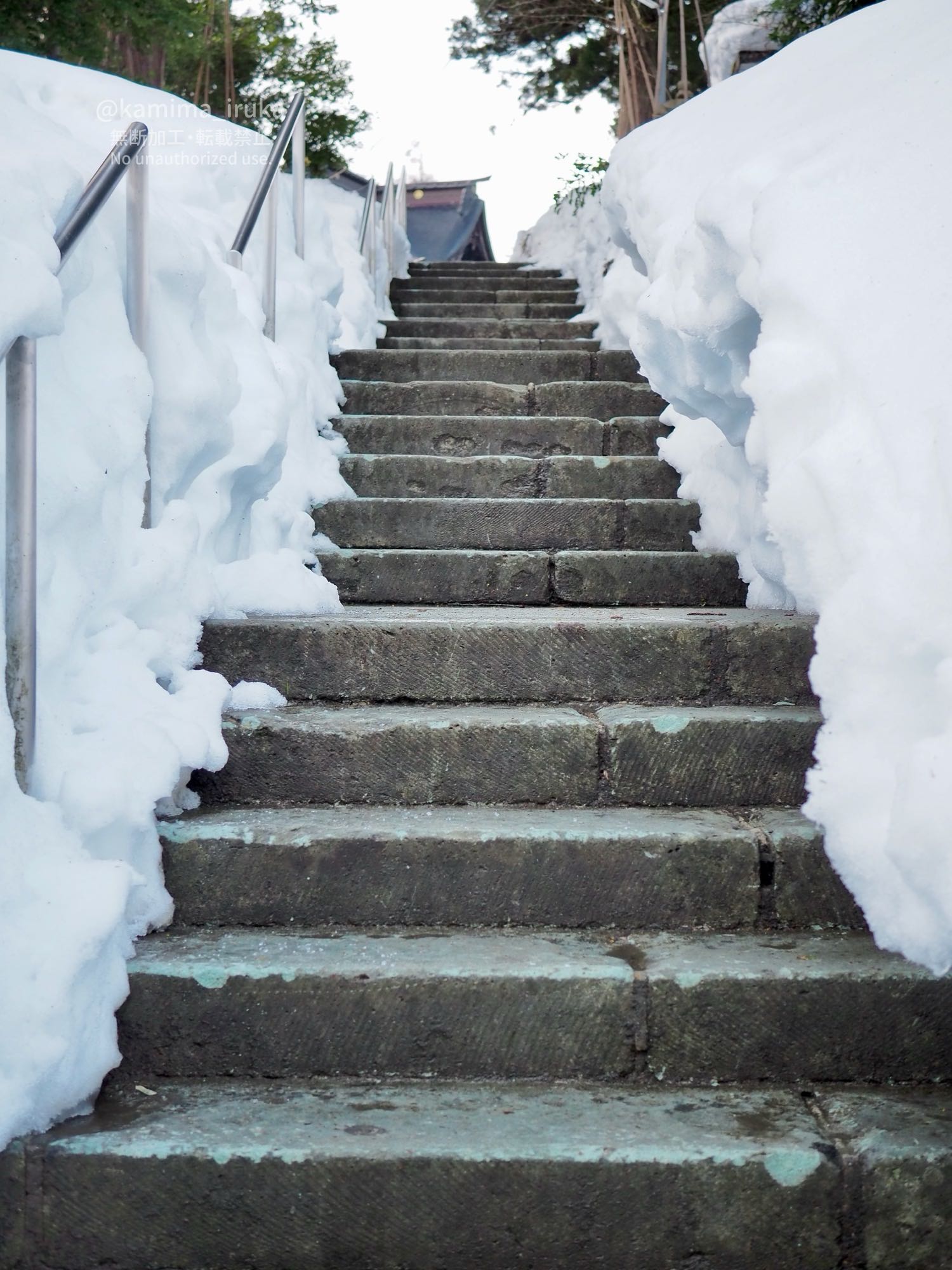 いつもの神社も、表参道はまだ雪に埋もれていて通れず…(別の道があるのでそこから参拝は可能)