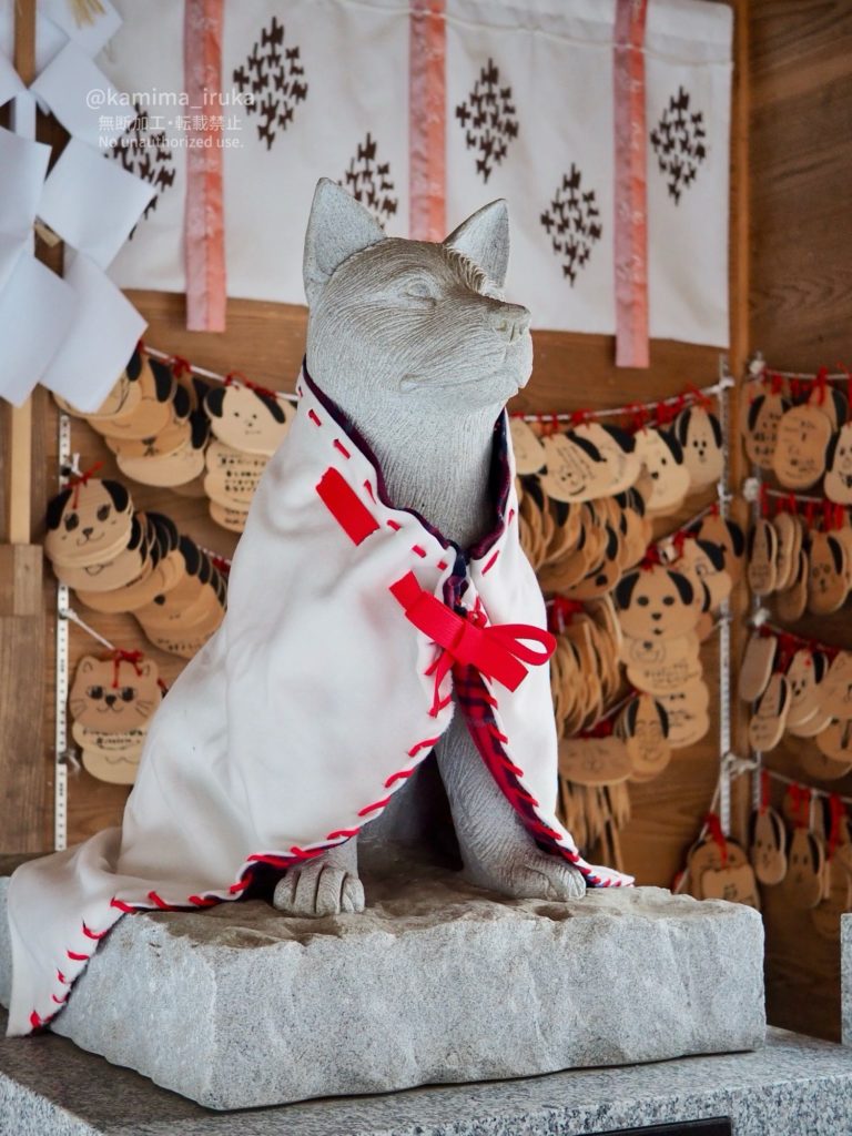 「忠犬しろ神社」のしろ様、冬仕様のあたたかそうな羽織り物をお召しになっておられました。