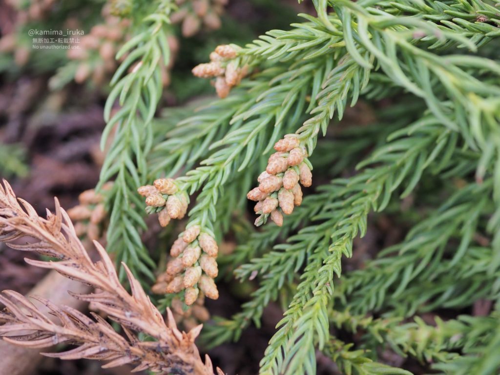 花粉症の方は見るだけで鼻がムズムズしそうな写真(?)風の強い日はスギの花粉が舞っております。